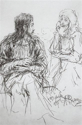Repin, Ilya. Christ and Nicodemus. 1887.